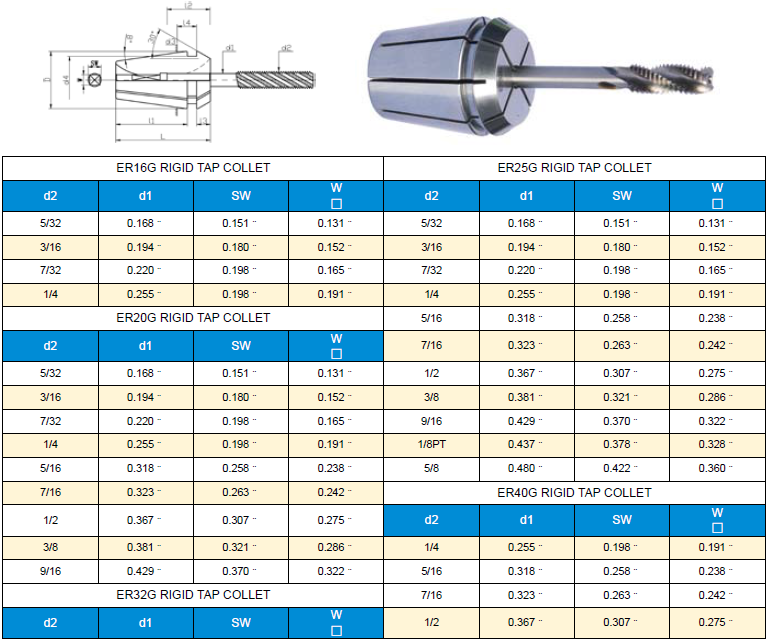 CD01-0006 ERG型攻牙筒夾 英制規格