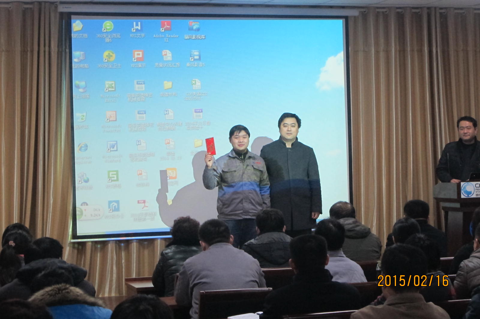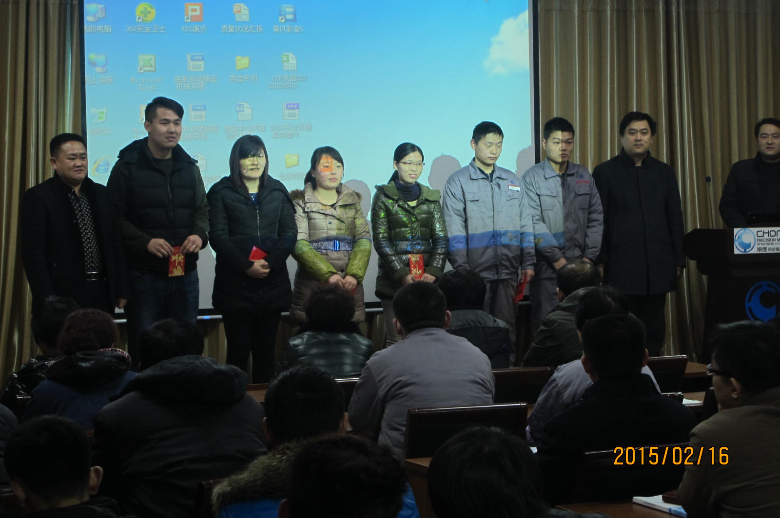爆竹聲聲辭舊歲,喜氣洋洋迎新春。2015年2月16日上午,曲阜市崇德精密機械有限公司“2014優秀員工表彰大會暨2015動員大會”在公司二樓會議室舉行。總經理孔凡東和副總經理顏旭為獲獎員工頒發獎勵。總經理孔凡東向全體員工分享了公司2015年的發展規劃,勉勵全體員工再接再厲,在新的一年里做出更大貢獻,為實現公司的發展目標,打造民族品牌產品而努力奮斗。