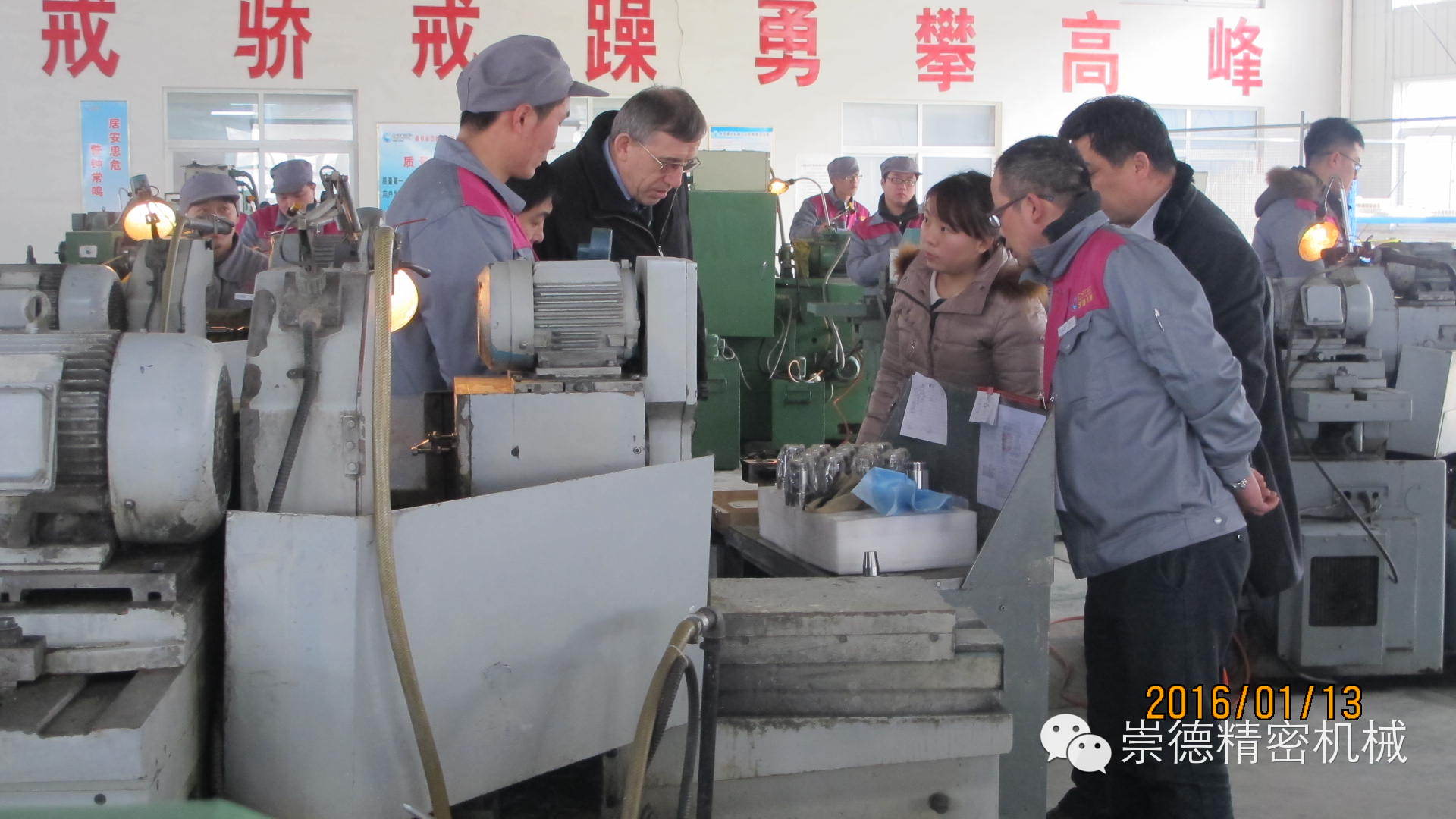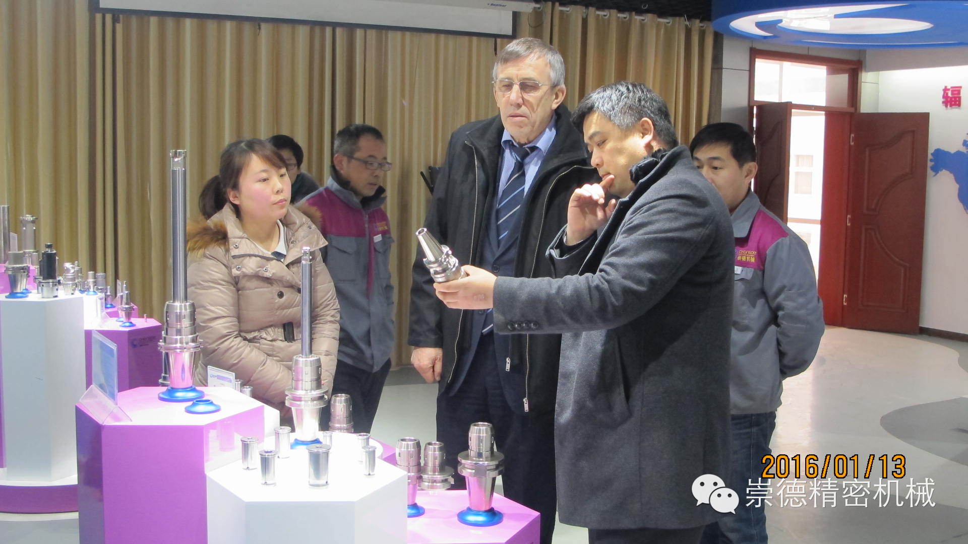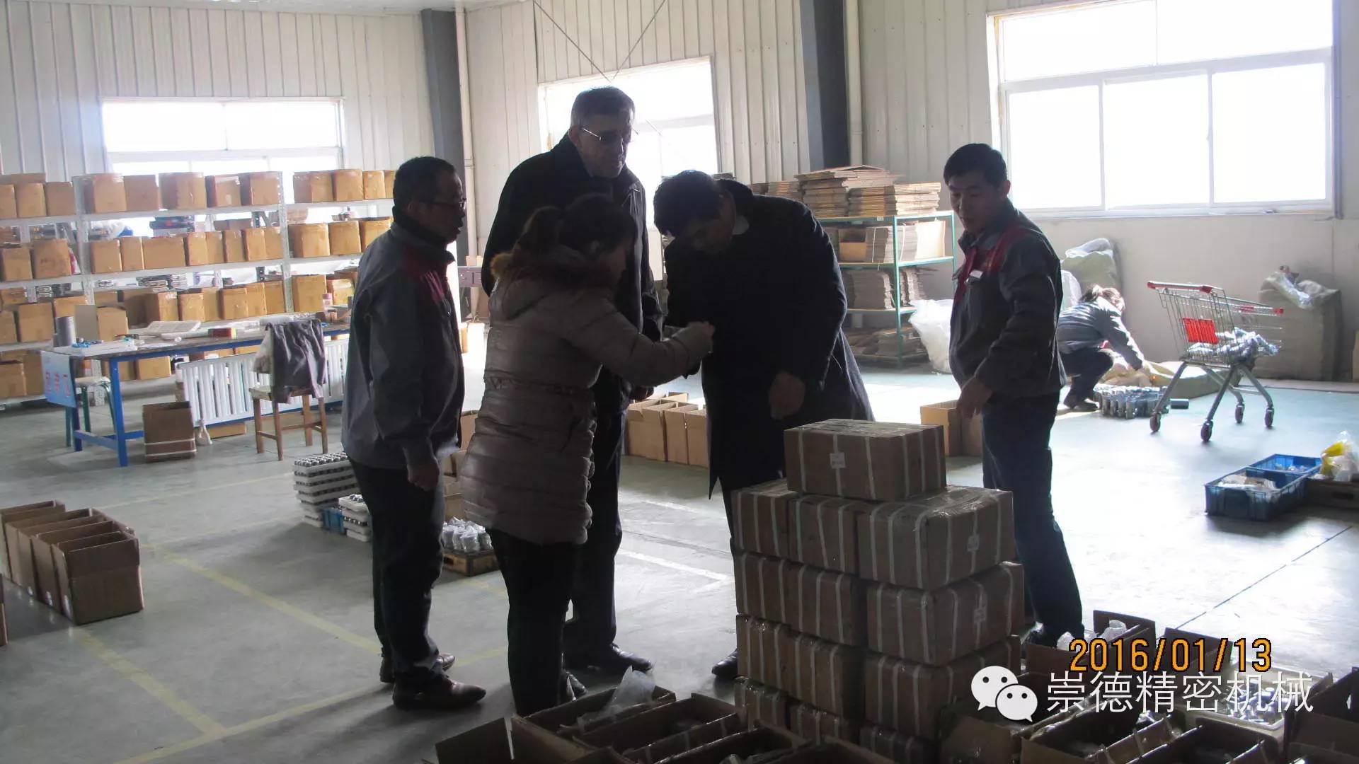 1.13日上午十點,俄羅斯客戶應約抵達崇德。總經理帶領崇德高管熱情迎接,還沒等緩解一路的車馬勞頓,我們這位外國友人就迫不及待的想要參觀一下崇德公司。他說他想認真看看崇德產品,在意大利展會上他對我們的產品非常滿意。